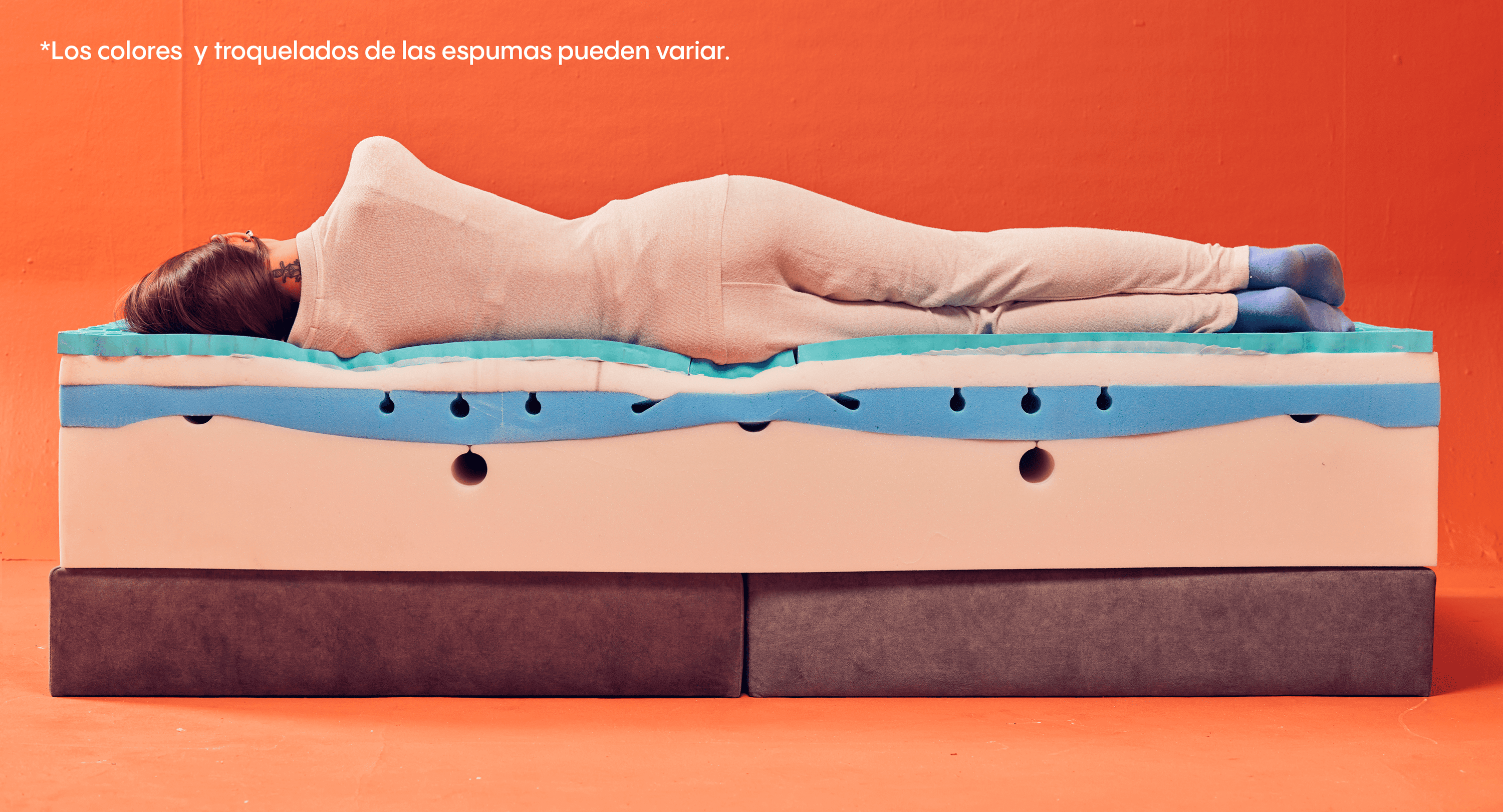 - Sin importar la posición en la que duermas, se adapta de forma natural a la silueta de tu cuerpo, ajustándose a cada movimiento, ya sea consciente o involuntario mientras descansas.