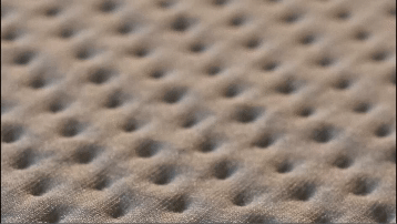 - Su capa superior, elaborada con un troquel especialmente diseñado, genera miles de ductos que permiten la libre circulación del aire.